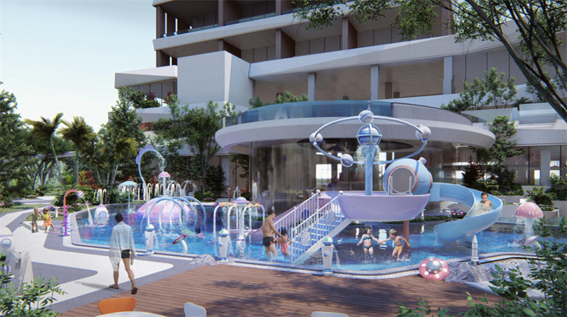 廣州綠沁集團通過細致的產品特色研究和區域文化的分析,決定以“星際之旅”文化為主題,結合項目IP展開“星域奇緣(室內溫泉)-星月神話-璀璨星宿-星下拾翠(室外溫泉)-星河穿越(溫泉天廊)-神秘星宮(私密溫泉)-星河忘川(屋頂溫泉)-番外篇(溫泉湯街)”系列星空探秘旅程體驗,結合夜景星空元素,提取“萬象、自然、科幻、流線、星空”設計元素,沉浸式八大主題神秘空間,打造國內首個科幻主題溫泉項目。