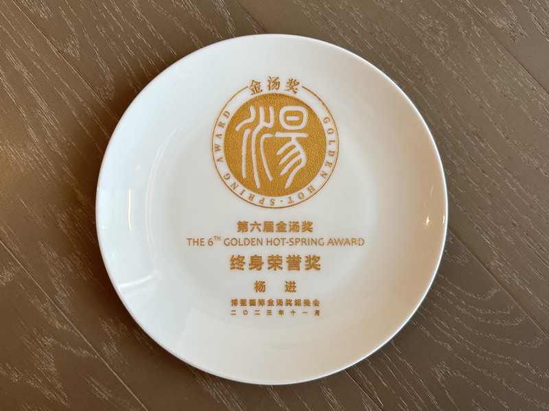 2023年11月15日至17日,第十屆中國溫泉旅游推廣季暨第六屆金湯獎(jiǎng)?lì)C獎(jiǎng)典禮在江蘇鹽城天沐溫泉度假酒店隆重舉行。綠沁集團(tuán)總裁楊進(jìn)先生榮獲中國溫泉金湯獎(jiǎng)人物類最高榮譽(yù)獎(jiǎng)項(xiàng)——“終身榮譽(yù)獎(jiǎng)”。