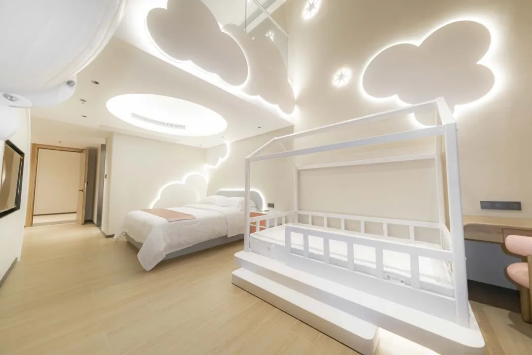 新建的森波拉松鼠酒店顏值高、煥然一新,掩映于山湖林海中,融合了宇宙星空、神秘森林、魔幻海底、精靈城堡、抒情假日等元素打造出五大特色主題。房型涵蓋主題家庭套房、商務套房、親子LOFT、度假別墅等,配套有嬉水樂園、網紅松鼠主題泳道、松鼠餐廳、松林咖啡廳等休閑度假設施,環境精致奢雅,親子趣味多多,讓家庭成員沉浸于愜意夢幻的美好度假時光,是國內別具一格的度假型親子主題酒店。